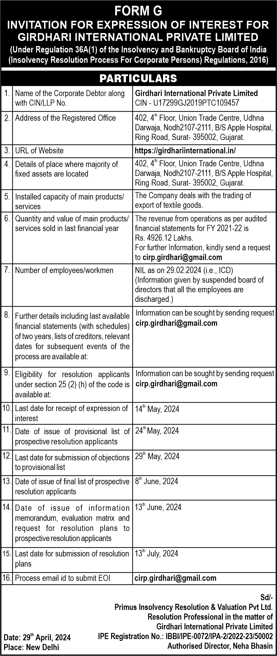 > Corporate Insolvency Resolution Process